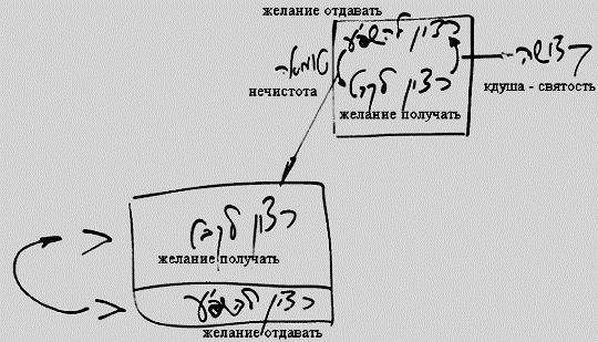 И это является источником нескольких очень важных вещей. Прежде всего, между этими желаниями возникает связь и взаимопроникновение одного в другое. Когда желание получать включается в желание отдавать, это называется "святость".