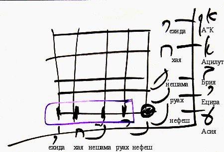 Есть у нас Адам Кадмон, Брия, Ецира, Асия, нефеш, руах, нешама, хая, ехида, так же есть это в каждом мире - нефеш, руах, нешама, хая, ехида. И так это в каждом мире. Это понятно, так как каждый мир делится на пять парцуфим, и в каждом парцуфе есть свой НаРаНХа"Й.