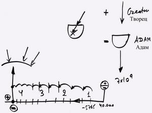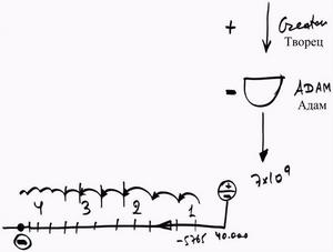 Структура творения под названием «Адам» разделилась на семь миллиардов душ (7Х109). В каждой частной детали общей души присутствует «плюс» и «минус», часть Творца и часть творения. Пока что, на протяжении истории, в каждой душе развивается отрицательная часть. Вот уже сорок тысяч лет, как люди обретаются на земле. Адам жил 5765 лет назад, и с тех пор по ходу развития цепочка каббалистов тянется до наших времен.