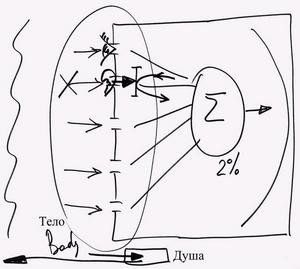 Мы изучаем принцип действия этого чувствительного элемента. Он работает лишь согласно уподоблению свойств. Существует нечто вовне, и я не знаю, что это такое. Но я если достигаю уподобления свойств с этой внешней сущностью, уравнивая с ней органы чувств – я начинаю ощущать внутри то, что находится снаружи. Внутреннее ощущение действительно отражает внешний фактор, поскольку я приступаю к работе с этим органом чувств, с этим сенсором, по совершенно иной методике восприятия реальности, которая называется «уподоблением свойств».