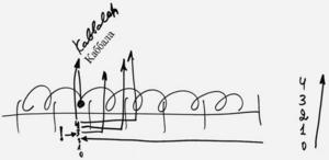 Вопрос этот проистекает из простой вещи. Мы продвигаемся в своих желаниях от физических наслаждений к деньгам, почестям и знаниям. Обозначим «нулем» корневой уровень желания. В результате, мы приходим к желанию духовного развития, к «точке в сердце», и начинаем изучать науку Каббала. Что тогда с нами тогда происходит? Происходит то, что мы увеличиваем наши желания. Раньше они были направлены на наслаждения этого мира (стрелки вниз). Мы искали, как насладиться здесь, в нашем теле, а теперь во мне начинают раскрываться духовные желания (стрелки вправо), которые еще больше прежних. Раньше мои желания были ориентированы на этот мир, а теперь мне раскрываются желания духовных наслаждений. Речь идет об очень больших светах, очень больших наслаждениях.