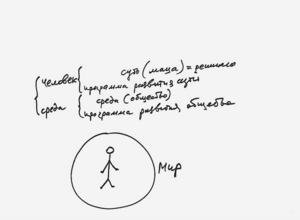 Кроме того, вокруг нас есть еще среда обитания (общество) и программа развития общества. Сюда же, естественно, относятся и более низкие формы жизни вокруг нас: животная, растительная, неживая. В них нет вообще никакой свободы воли, все замкнуто, все четко детерминировано.