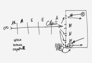 Представьте себе (см. Рис. 17), что если мы поднимаемся от нашего мира (от нуля) к миру Бесконечности, то человека бросают вниз, потом он снова поднимается вверх, его бросают вниз, он снова поднимается вверх. Когда он подходит к своему последнему состоянию, то прежде чем подняться к уровню Бесконечности, у него практически до «минус Бесконечности» все его эгоистические свойства выходят наружу, и только исправив его, он поднимается в мир Бесконечности.