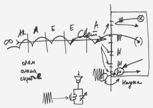 Вокруг нас есть какие-то волны, а здесь есть колебательный контур (см. Рис. 15). Если этот контур создает такие же волны, как снаружи, тогда мы воспринимаем меру подобия между этими волнами, и она же нами и воспринимается. Получается, что кроме этой внутренней настройки, нам больше нечего делать, только этим и нужно заниматься.