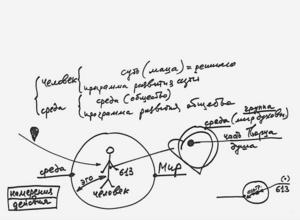 Если мы берем только человека и среду как единую систему, то в ней абсолютно исключена какая бы то ни было свобода: все заранее дано, все развивается по определенной программе, мы ничего не можем сделать. Лет в 40-50, оглядываясь назад, мы, как правило, понимаем, что в нашей жизни ничего не могло быть иначе. То, что мы прошли, прокрутилось бы и еще раз, и никуда бы я не дернулся и по-другому бы не поступил. Ведь если мог поступить, то почему не поступил? То есть относительно прошлого мы, в принципе, согласны с тем, что развивались автоматически.