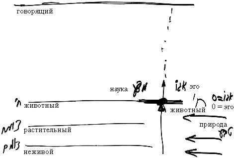 Как только я становлюсь «говорящим», т.е. вырастаю до человеческого уровня, мне становятся нужны познания, наука. Мне необходима добавка, соответствующая растущему во мне эго (это уже эго). До сих пор мое эго было на нулевом уровне. На животном уровне эго равно нулю. Вернее, это не эго, это – природа.