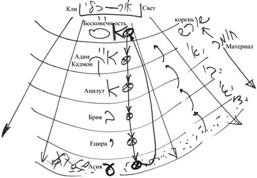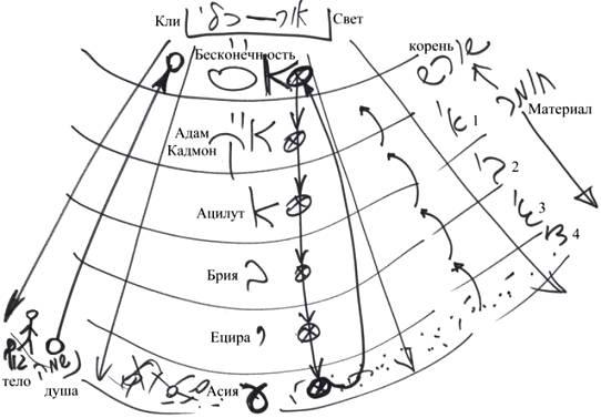 Начиная с мира Бесконечности, через миры Адам Кадмон, Ацилут, Брия, Ецира и Асия всё больше и больше раскрывается эта система взаимоотношений между Творцом и творением, между светом и сосудом. Она проявляется всё полнее с каждым разом, однако в мире Бесконечности изначально присутствует всё.