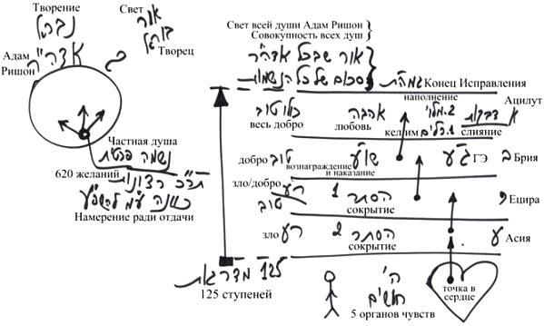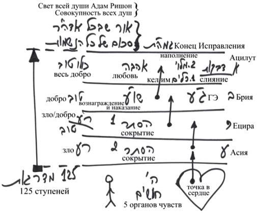 Таким образом, наука Каббала объясняет нам весь путь сверху вниз, рассказывая о том, как устроены души и миры во время подготовки, и как мы начинаем выстраивать себя снизу вверх благодаря мирам, благодаря той самой подготовке.