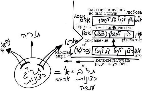 «Не делай другому того, что ненавистно тебе», – тот, кто достигает этого состояния, называется Исраэль, дословно: «прямо к Творцу». То есть человек уже ищет путь для достижения подобия свойств с Творцом. И когда он достигает подобия свойств, он называется Адам – «эдамэ», подобный Творцу. Это уже желание получать ради отдачи. Это уже любовь.