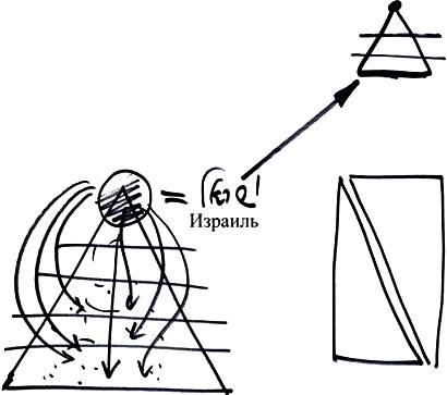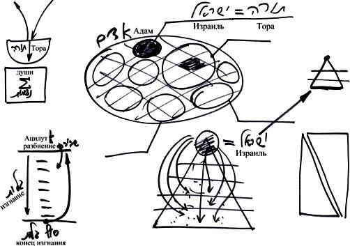 Можно нарисовать общую душу Адама Ришон в виде пирамиды или в виде двух треугольников: верхнего и нижнего. Здесь имеет место обратный порядок светов и сосудов, обратный порядок авиюта и экранов, авиюта и исправлений, а потому, совершенство постигается лишь в конце. Если «Израилем» называется чистая часть пирамиды, то ему полагается первым прийти к исправлению, а затем передать его народам мира, остальным частям, которые лежат ниже. Это лишь показывает нам, что Израилю свойственен малый авиют, а затем, когда процесс достигает народов мира с их большим авиютом – именно благодаря им раскрываются большие света и большие исправления.