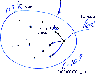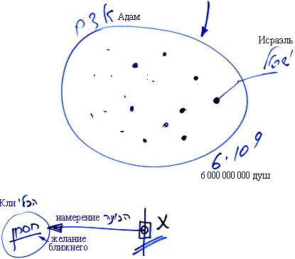 Среди, допустим, шести миллиардов, находящихся в общей системе, именуемой Адам Ришон, выявляются те, в ком есть точка в сердце. Они называются Исраэль и обладают заслугами отцов.