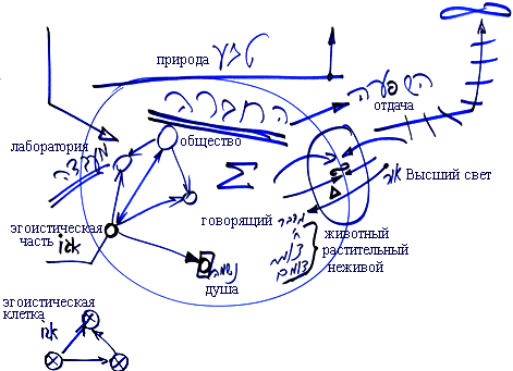 «…И застонали сыны Израиля от этой работы». Когда человек работает над собой, желая исправить себя по отношению к обществу, товарищам, он сталкивается с трудностями. Как изображено на чертеже, вся наша работа ориентирована на общество. Если мы не вложимся в нее, и не будем проверять себя в этом, то не почувствуем, насколько противоположны тому, к чему стремимся.
