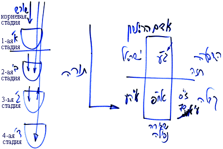Сверху приходит свет – «бхина шореш» – корневая стадия и создает желание насладиться, которое называется «бхина алеф» – первая стадия. Такова разница между корневой и первой стадиями.