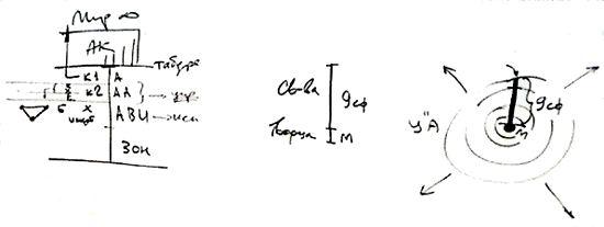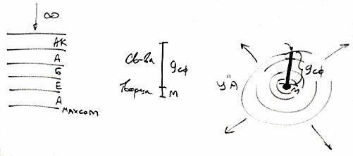 Итак, есть 9 первых сфирот и Малхут. И самое главное – сейчас надо исправлять Малхут. Мы создали вместо девяти сфирот систему миров. Кетер, Хохма – это А"К, Ацилут вместо Брия – это Бина, Брия, З"А – это Ецира и Малхут, которая здесь как представитель – это Асия. Образовалась система миров, которая находится до Малхут, до этой центральной точки, которая находится в центре всех кругов, а теперь нам надо исправлять эту точку. Еще раз повторяю, эти миры мы создали тем, что Малхут как бы ограничивала эти первые 9 сфирот своим несоответствием с ними, то есть разбили Малхут внутри этих 9 сфирот, а сейчас мы первые 9 сфирот должны разбить в Малхут. Как это делается?