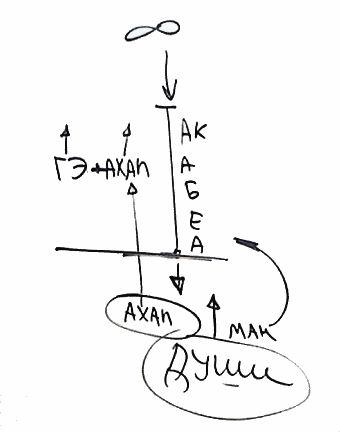 Душа, поднимая МАН (желание получить) вносит в эти миры это желание, к Гальгальта вэ-Эйнаим прибавляется АХАП, который поднимается с МАН, и в этой мере из мира Бесконечности проходит свет на душу или на души.