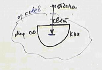 То есть мы, со своей стороны, должны постепенно подняться снизу вверх до этого уровня и сделать его сами. Что значит «сами сделать его»? Это кли разбивается и дается нам в нулевом виде, т.е. сначала нам дается маленькая горошинка этого кли, маленькая частичка, а потом большая и большая, и так до тех пор, пока мы не становимся реальным, большим кли. Что это значит?