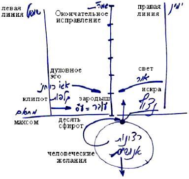 Как мы из него растем? Очень просто. У нас есть две линии - правая и левая. Из левой линии к нам приходят клипот, действительно эгоистические желания – не человеческие, а духовные - духовное эго, и мы исправляем его с помощью света, сил отдачи, которые приходят к нам из правой линии. Так мы растем в десяти сфирот, все больше и больше, пока не достигаем Окончательного Исправления.