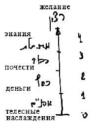 Когда говорится, что в человеке растут желания от желаний физических к желаниям человеческим (к пище, богатству, почету и знаниям), говорится об облачении желания. Желание, которое растет изнутри, разделяется на первый, второй, третий и четвертый уровни. Мы говорим о величине желания. Величина желания раскрывается нам в телесных наслаждениях, богатстве, почестях и знаниях.