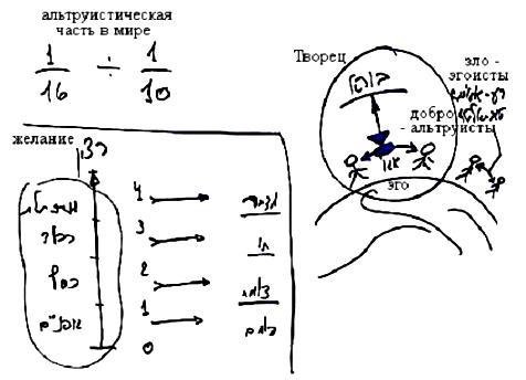 Поэтому мы не идем к альтруистам с методикой Каббалы. У них есть возвышенное желание, они очень чистые. Они могут жить в лесу или делать добро человечеству, которое на них плюет. Надо понять это желание. Альтруистическое желание – это желание возвышенное. И что интересно, всегда, во всей истории человечества этот процент постоянен, он не увеличивается и не уменьшается. Как будто Творец постоянно заботится о том, чтобы в мире от 1/16 до 1/10 части всего человечества были альтруистами. Это соответствует законам Менделя, законам генетики.