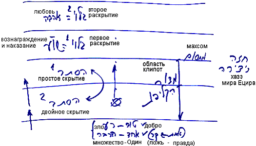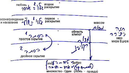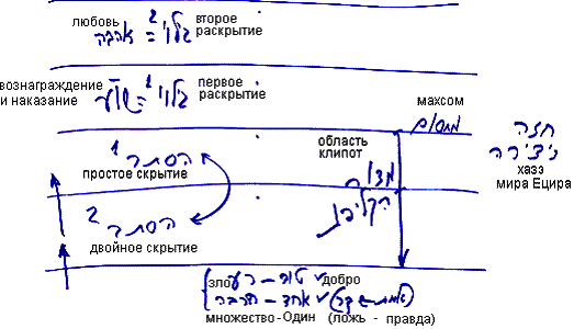 Одинарное скрытие означает, что вместо добра я вижу и ощущаю зло, а в двойном скрытии вместо Одного Творца, вместо «Нет иного кроме Него» я вижу множество сил в том, что раскрывается мне. Можно сказать, что это правда и ложь.