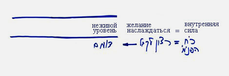 Желание насладиться – это внутренняя сила, и она уже определяет все свойства. Поскольку на неживом уровне желание насладиться мало, то форма, создаваемая им, является неживой. Неживому ничего не нужно, он не движется, и должен только удержать свою структуру в какой-то форме, допустим, на молекулярном уровне. Неважно, какую именно форму принимает неживой уровень, но он должен всего лишь удержать себя в таком существовании, к которому неживое желание насладиться обязывает его.
