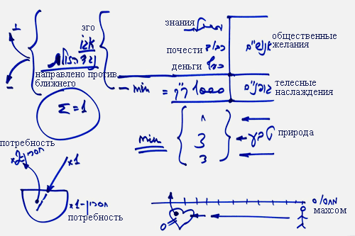 И самое главное, кроме этих желаний, у человека есть желания к деньгам, почестям и знаниям. Эти желания уже совершенно не задействуются природой, а зависят от общества. От поколения к поколению во мне развиваются желания или к деньгам, или к почестям, или к знаниям, а также в смеси между ними, и в этих желаниях человек неограничен, потому что он завидует, желает и видит то, что происходит с каждым человеком вокруг него, - и от всего этого впечатляется. То есть, эти желания не задействуются природой, а активизируются обществом.