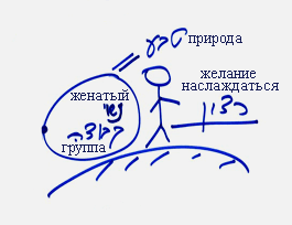 Но в человеке лишь часть его желаний задействуются природой. В человеке есть желания, называемые телесными, и есть общественные желания. Желания к наслаждениям тела – это желания к пище, сексу, семье – ко всему, что связано с телом, в чем человек нуждался бы, даже если бы жил один. Но и в этих желаниях к пище, сексу, семье и прочему я тоже хочу все больше и больше, мне недостаточно жить в какой-то пещере, в каком-то своем углу, где у меня есть жена, дети и все, чего требует тело на животном уровне. Нет, я хочу большего!