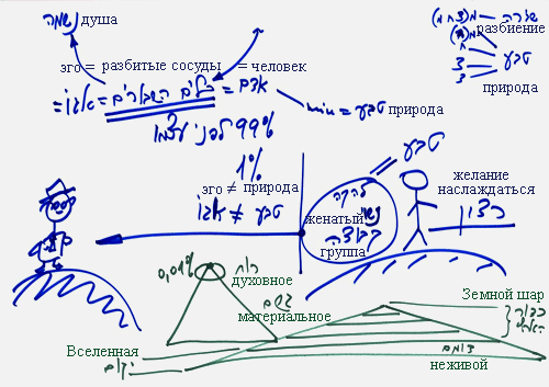 Поэтому я должен видеть Бесконечность, которая проходит через мир Адам Кадмон, Ацилут, Брия, Ецира, Асия, махсом и этот мир, в котором я существую. Весь свет, воздействующий на меня, приходит оттуда. То есть, все, что я вижу перед собой, что вроде бы спускается ко мне, - это Бесконечность, которая приходит ко мне через одеяния, а я воспринимаю Бесконечность и эти одеяния согласно своему эгоизму. И только себя я должен уравновесить и исправить.