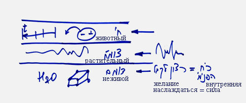 Мы видим, что всю природу, находящуюся перед нами, можно разделить на четыре части, четыре уровня: неживой, растительный, животный и человеческий, каждый из которых отличается своим внутренним желанием насладиться. Желание насладиться, желание получить наслаждение на неживом уровне является самым минимальным.