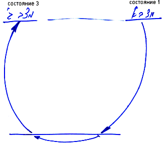 Есть первое состояние, из которого творение спускается в действительность, оторванную от духовного, а затем снова поднимается в состояние, равное первому, но уже являющееся третьим состоянием. Второе состояние находится между этими двумя состояниями и нам еще предстоит понять, как определить это второе состояние?