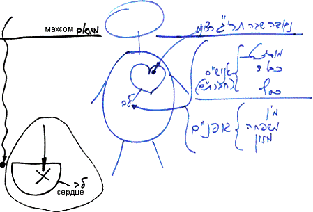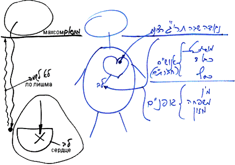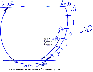 Развитие, которое происходит в этом мире – материальное. Материя развивается в наших пяти органах чувств до определенного состояния, в котором, без всякой связи с материей и органами чувств, пробуждается точка в сердце. Эту точку в сердце можно представить себе, как обратную сторону души (нефеш дэ-кдуша), т.е. начальную точку зарождающейся души – «часть Божественного свыше».