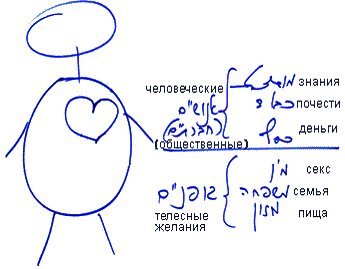 Мы говорим о процессе, который происходит с человеком в этом мире, мы не говорим о человеке в духовном смысле. Мы говорим о человеческом существе и о том, что происходит не с его телом, а с его желаниями, как это нарисовано на рисунке 7.