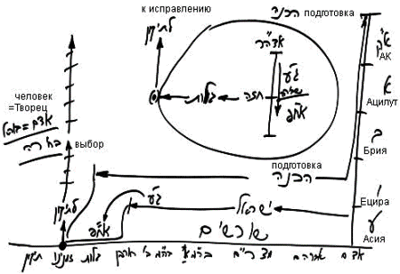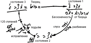 Ты пытаешься размышлять выше времени, но у тебя для этого нет слов. Говоря, что это всегда происходит так или эдак, ты имеешь в виду времена. Мы же говорим только о том, что можем себе представить, о существовании состояний 1, 2, 3. Иначе мы говорить не можем, поскольку наши слова, их объединение, восприятие и передача, вся наша связь делится на время, движение и пространство. Эти категории можно заменить понятиями более духовными - мир, год, душа, но без них мы не можем представить никакое состояние, тем более состояние эйн соф, где ничего не меняется кроме восприятия человека. И даже если мы согласимся, что все находится внутри человека, внутри того кли, в котором происходит развитие восприятия реальности - все нами сказанное всегда связано с категорией времени, и избавиться от этого мы не можем.