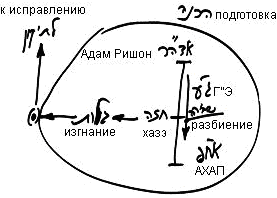 Таким образом произошло объединение ГЭ и АХАП, которые в парцуфе Адам Ришон существовали отдельно друг от друга. Разбившись, ГЭ включились в АХАП и смешались с ними. Это смешение называется изгнанием, а его окончание знаменуется пробуждением точки в сердце. И когда ГЭ даже в разбитом виде проявляются противостоящими АХАПу, тогда начинается исправление.