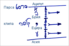 Почему Бааль Сулам говорит о мирах АБЕА, а я изобразил на чертеже только миры БЕА? Дело в том, что нечистый мир Ацилут также находится под Парсой в мире Брия.