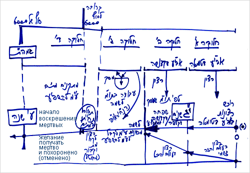 Вопрос: На чертеже (рис.13) написано: «начало воскрешения мертвых», а под этим написано «желание получать мертво и похоронено». Относится ли это к одному и тому же времени?