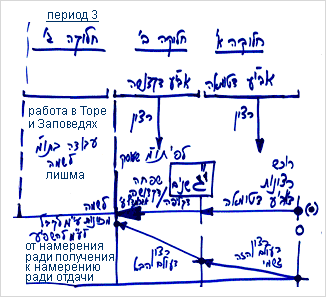 Во втором периоде человек обретает ступень «ло лишма». В первом периоде он вообще «ло лишма» не обретает. Обрести ступень «ло лишма» называется обрести ступень «чистой» служанки, поскольку «ло лишма» является подготовкой к «лишма», и это уже называется «госпожой». А до «госпожи» находится «служанка». Существует ступень «чистой» и «нечистой» служанки. Человек может как бы перекатываться между этими ступенями, пока не достигнет ступени «чистой» служанки.