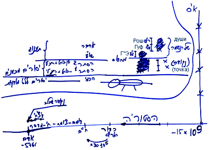 Я нарисовал это таким образом - в виде человечка, чтобы вы не запутались. Возможно, не стоило этого делать. Лучше его стереть и оставить только изображение парцуфа. У него пока еще нет ни рош, ни гуф. У него есть, как бы, точка. Но под махсомом – это вообще животное.