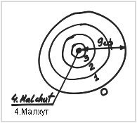 Итак, давайте рассмотрим, что же произошло. Творец – отдающий (это внешний круг на рисунке). Он создает желание насладиться. Желание насладиться желает отдавать, затем оно выполняет действие отдачи и этим достигает состояния, в котором хочет поглотить все и начинает ощущать свое «Я». Это четвертая стадия, которая называется Малхут.
