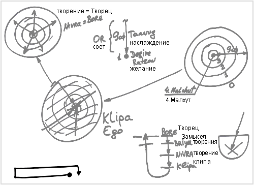 Это очень узкий, как труба, путь, и если я хочу войти в эту трубу;– я войду. Но если я думаю не совсем об этом, а о чем-то другом, произойдет отклонение, и я не войду. Эта труба называется мирами: Асия, Ецира, Брия, Ацилут.