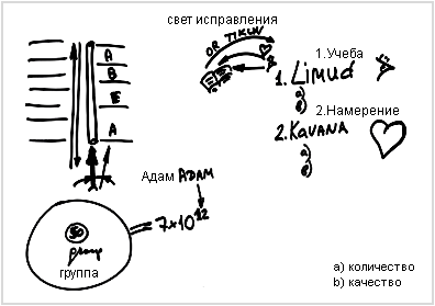 Итак, у меня есть группа, и если я в группе делаю правильное усилие для приобретения свойства отдачи и любви, поскольку я слышу, что так отдает и воздействует Творец, благодаря этому я устремляю себя к входу в духовный процесс, в эту трубу. И каждый раз мне придется все более и более точно направлять себя относительно других. Это называется намерением.
