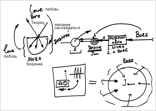 Это подобно принципу работы радиоприемника. У меня есть радиоприемник, я изменяю внутреннюю волну, и если определенная внутренняя волна совпадает с внешней, радио улавливает ее, согласно подобию свойств между волнами. Снаружи существуют миллионы волн, но я воспринимаю только одну, соответствующую той, которую я создаю внутри.