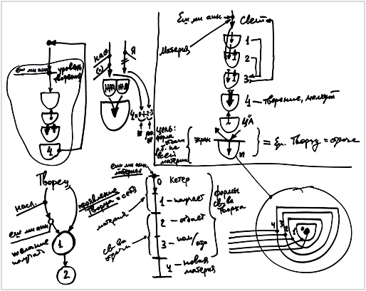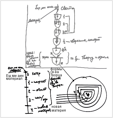 А как это можно сделать? Первые стадии: нулевая, первая, вторая, третья (кроме четвертой) - означают первобытное, первоначальное желание, исходящее от Творца, точку, на которую начал действовать свет. И она распространилась вместе со светом. Сейчас этой точки еще практически не видно, она вся находится внутри света. Это называется «Кетер» – «Корона» - как бы окружение, которое властвует, управляет всем. Это желание – «еш ми айн» («нечто из ничего»), которое начинает развиваться. А затем эта точка, материал творения, как пластилин, начинает принимать разные формы: в первой стадии он получает, во второй - хочет отдавать (ему нечего отдать, но, допустим, отдает), а в третьей стадии он получает и отдает, но при этом становится подобным Творцу. И только в четвертой стадии у него возникает свое личное, самостоятельное желание, которого не было во всех предыдущих. То есть, здесь происходит так называемые «явления форм», мы их называем «свойства Творца». Почему Творца? Потому что Он так проявляется в материи.