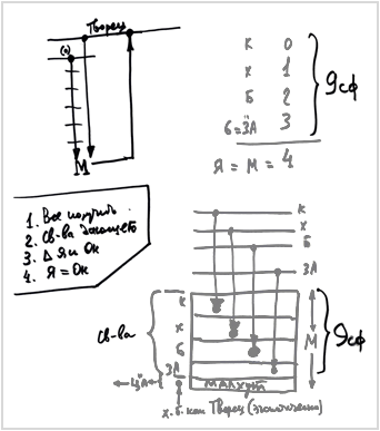 А дальше он рассуждает: «Что же я могу сделать»? С первыми тремя стадиями - ноль, один, два, три, – нет проблем, это все свойства Творца. На самом деле, это девять сфирот, потому что третья стадия состоит из шести. Кетер, Хохма, Бина и Зеир Анпин, который состоит из шести частей – это все девять частей, которые не являются мной, это отношение Творца ко мне. А мое желание - там, где я ощущаю себя – Малхут – это мое «Я». Здесь весь я.
