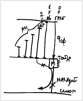 Итак, Малхут находится под Табуром Гальгальты. Над Табуром девять первых сфирот. Парцуф Гальгальта – это нулевая стадия из четырех стадий прямого света, АБ – первая стадия, а вторая стадия САГ - это свойство отдачи. Сейчас Малхут начинает принимать в себя свойство отдачи.