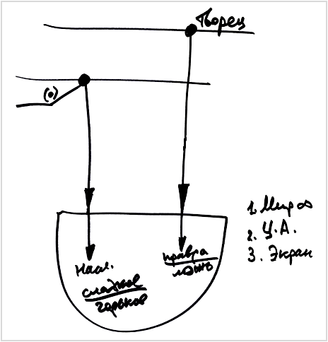 С уровня "точка творения" Творец воздействует на меня, на мое желание наслаждением – это и есть «сладкое или горькое», а воздействуя на меня со второго уровня "уровень Творца", вызывает во мне понимание «правда – ложь».