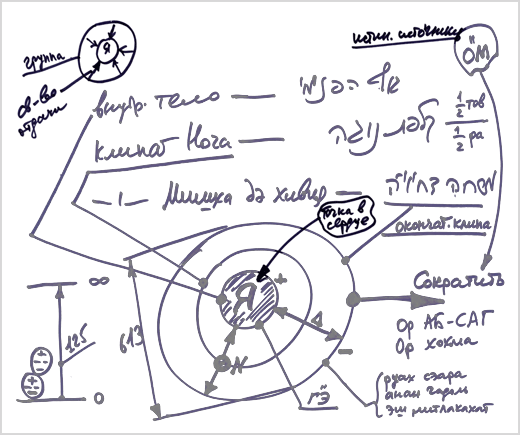 Например, во мне проявилось какое-то решимо, духовный ген, с заданными параметрами «m/n». «М» - это решимо дэ-итлабшут, «N» это решимо дэ-авиют. Эти параметры проявились изнутри меня соответстванно моей подготовки. Мне не дают больше, чем я могу правильно воспринять, а правильно среагировать на то, что мне дали, я смогу только в мере своей подготовки.