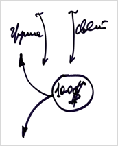 Для того чтобы себя обезопасить и ни в коем случае не падать под воздействие Клипат Нога, человеку нужно третье средство - группа. Почему? Человеку нужен довесок правильной ориентации, который позволит ему относиться к своим желаниям не изнутри себя, потому что изнутри не может быть анализа, что с этими желаниями делать в каждый момент времени. Человеку надо включить себя (на чертеже «Я») в окружающее поле, которое поможет ему увидеть эти нейтральные желания и правильно их использовать.