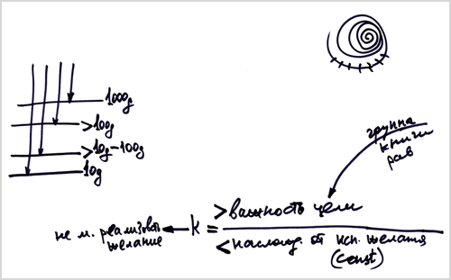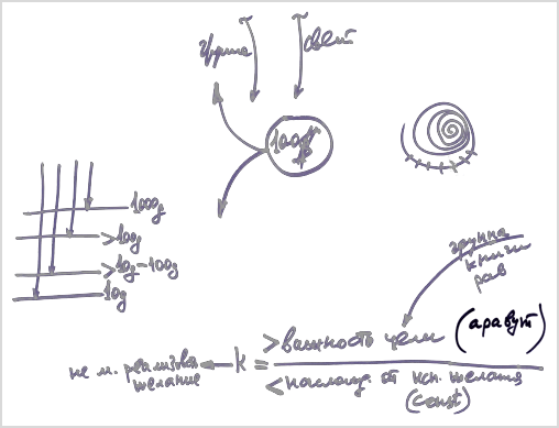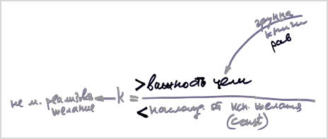 Если я увеличиваю важность цели, у меня этот коэффициент становится положительным, то есть, важность цели перевешивает наслаждение от исполнения желания, как, допустим, от курения. Тогда поневоле важность цели приводит меня к тому, что я не могу реализовать желание.