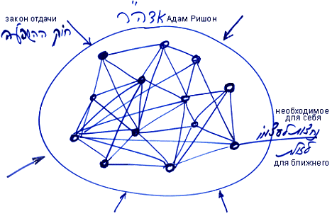 Связи между частями этой системы были подобны связям в теле, когда каждый берет себе только необходимое для своего существования, а все его действия – ради ближнего. То есть все остальное – для ближнего. Таков закон участия каждой души в общей системе, похоже на клетки тела. Это закон жизни.